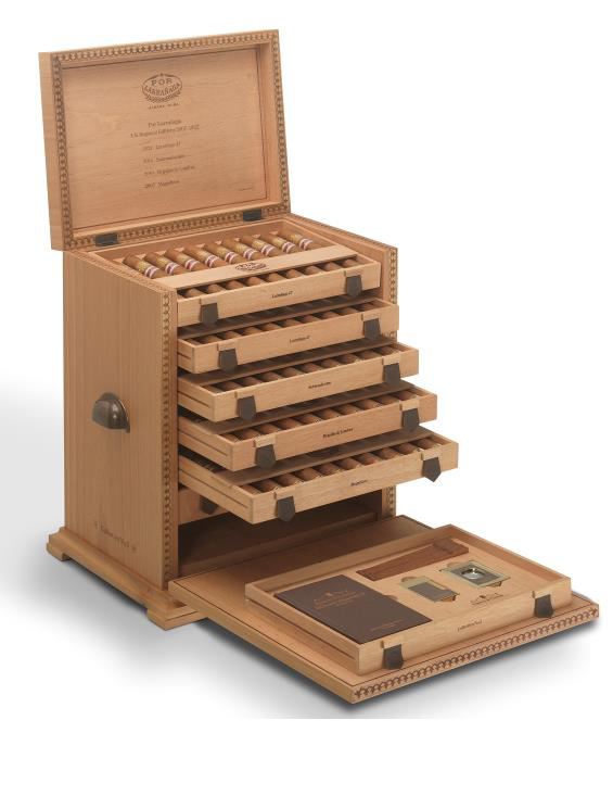 A limited edition of fifty numbered humidors has been handcrafted by Italian specialists DeART S.r.l. Each humidor contains 50 Por Larrañaga cigars, representing the four vitolas previously chosen as UK Habanos Regional Editions. These cigars are double-banded and feature an additional foot band, distinguishing them as part of the Hunters & Frankau House Reserve Series 1790 Collection No.3.