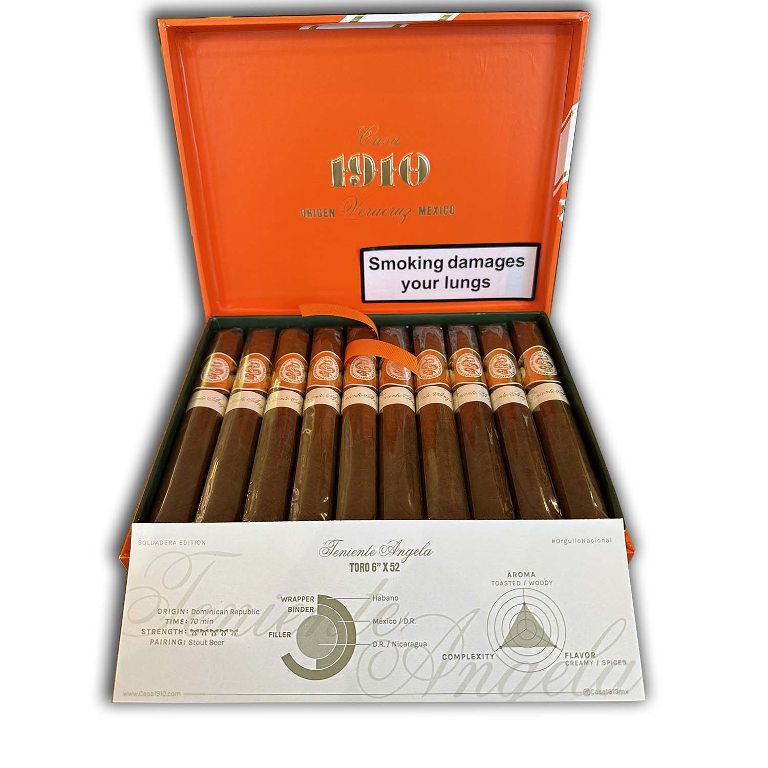 The Casa 1910 Soldadera Edition was created to honor three brave women who fought fiercely to liberate their country during the Mexican Revolution. The Soldadera Edition comes in three distinct blends: the Sampetrina, La Coronela, and Teniente Angela. Each blend is dedicated to one of the women. All three blends are expertly handmade in the Dominican Republic at the Tabacalera La ISLA factory, which is owned by Hostos Fernández Quesada. The Soldadera Edition is the first line of the Casa 1910 brand to be crafted in the Dominican Republic.