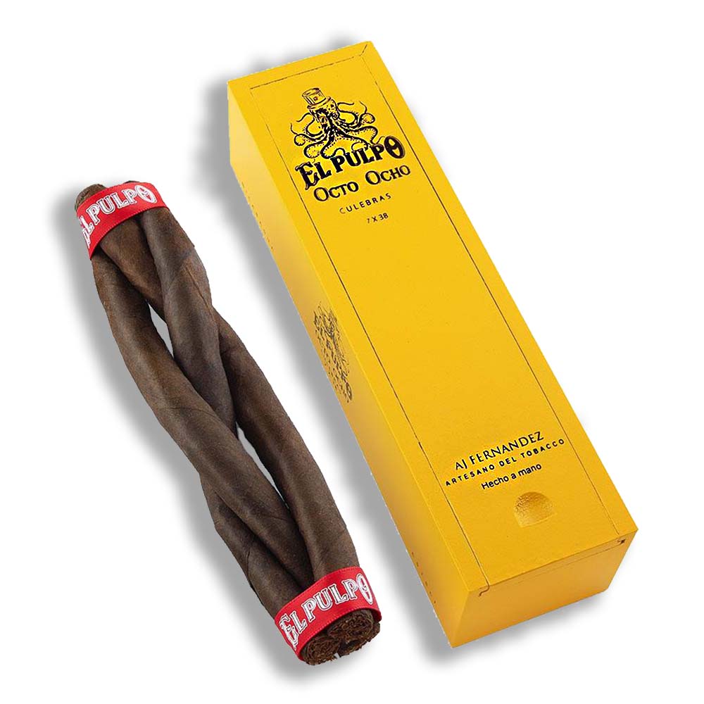 The El Pulpo Octo Ocho Culebra (7″ x 38) is a visually striking and wildly unique addition to the award-winning El Pulpo line by Artesano Del Tobacco. Hand-rolled at AJ Fernandez’s San Lotano factory in Nicaragua, this “Octo Ocho” features three long, elegant panatelas intertwined to resemble a cluster of snakes.