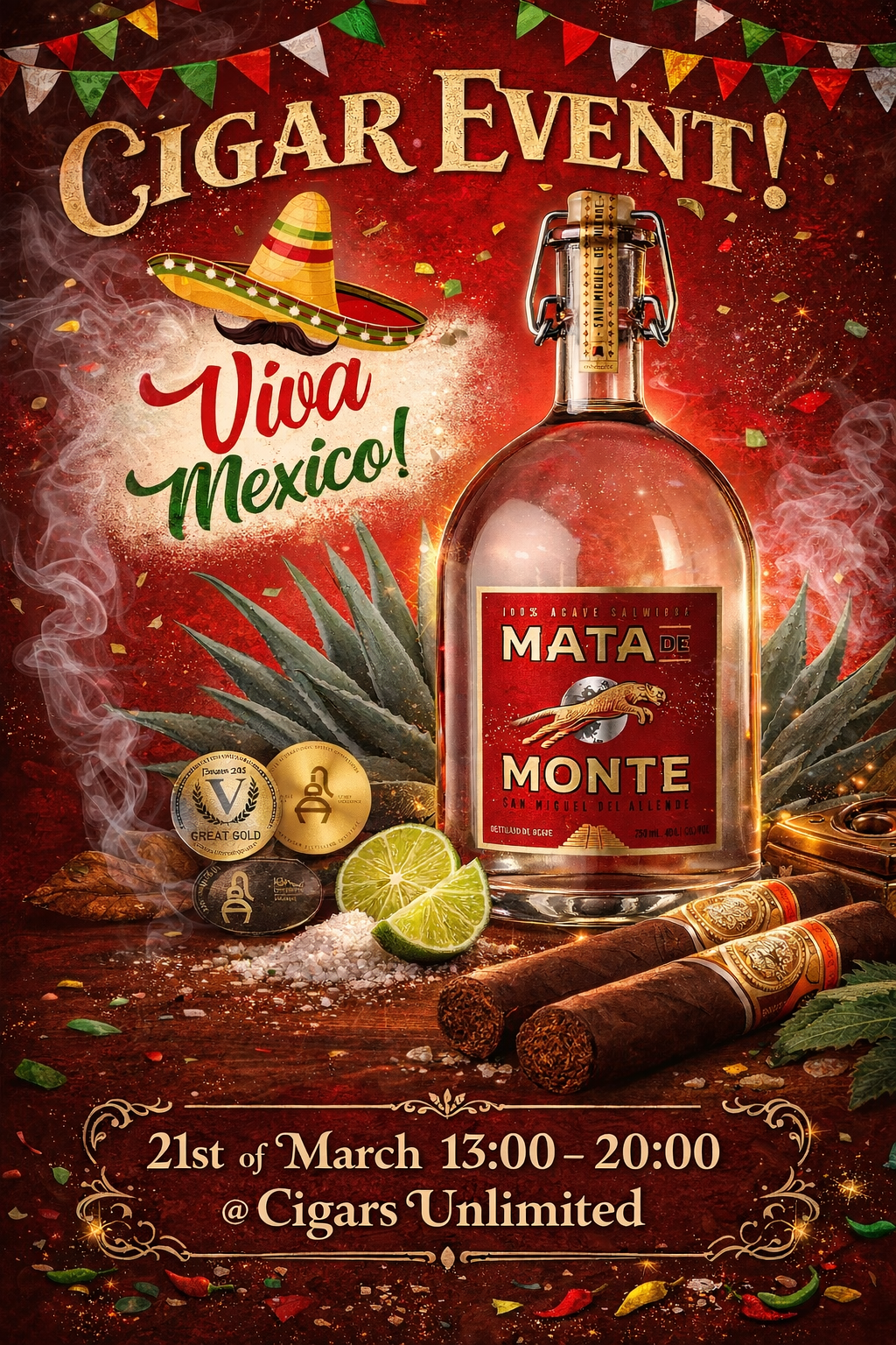 Last Saturday, the Cigars Unlimited sampling lounge in Fulham transformed into a fiesta of flavour as guests gathered for one of the most exciting pairing events in recent memory — a Mexican-themed evening celebrating the extraordinary Casa 1910 cigar range alongside the smooth, premium Mata de Monte Tequila.